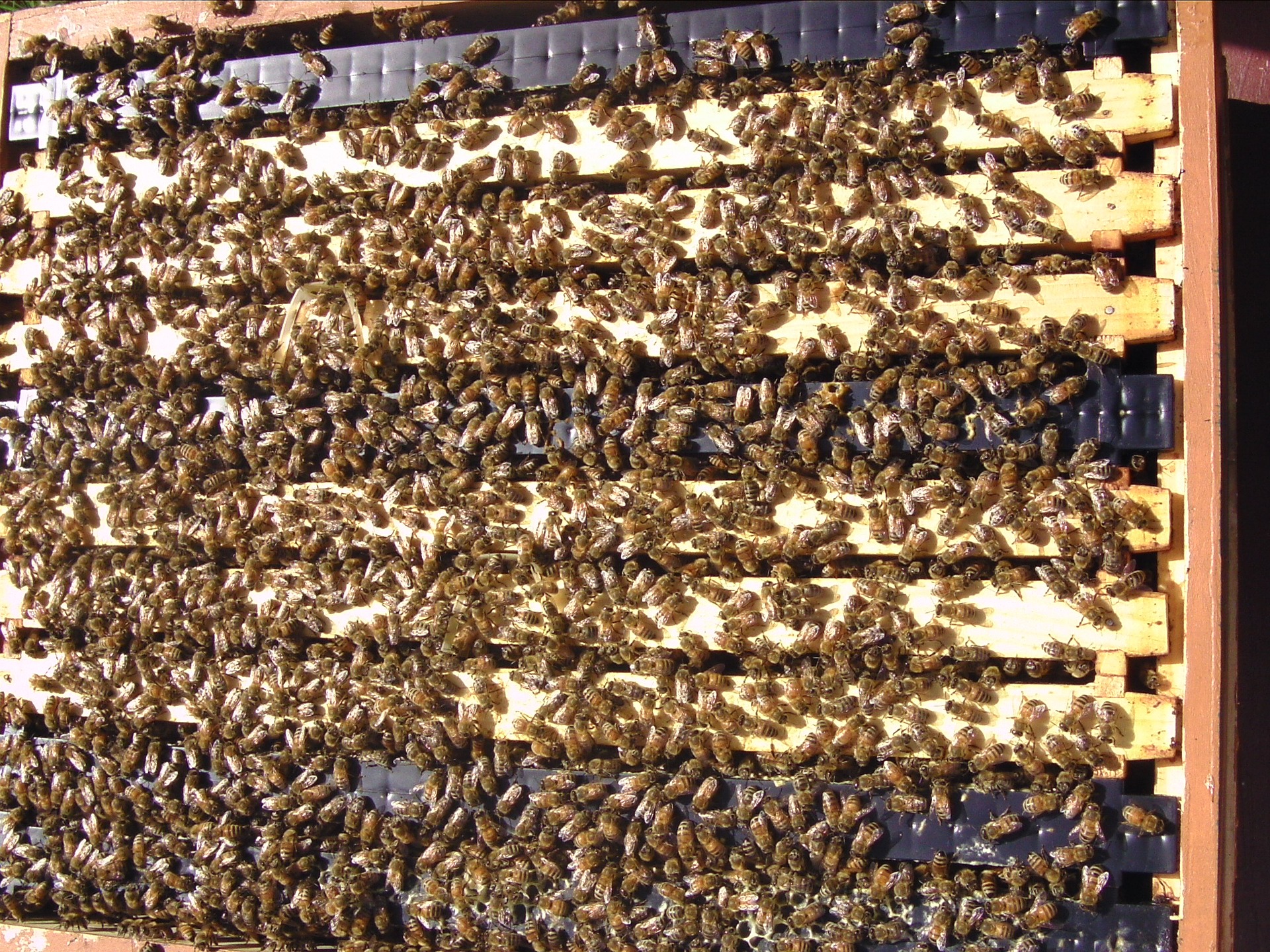 Núcleo de abejas de raza italiana o canadiense. Contiene 4 marcos con abeja reina fecundada, 3 marcos con abundantes crías de abejas selladas y en desarrollo, y un marco de miel. Producto tratado sanitariamente.